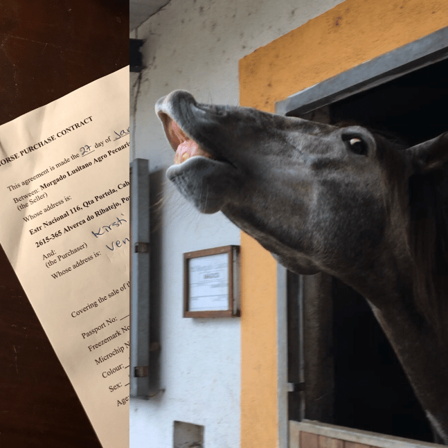 From that moment on, I couldn’t shake Magico off my mind. I wasn’t sure how my partner would take the idea that I would regularly go to Portugal to spend time with my young horse. I decided I didn’t need to tell him before it was time to commit. So, at the end of the week, I sent Alexandre a WhatsApp asking him to put Magico to vet check – that will buy me time to think this through and I cannot make the purchase decision without the vet check anyway.
